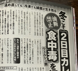 現在発売中の女性自身にウェルシュ菌についてのコメントが掲載されております🙋‍♀️